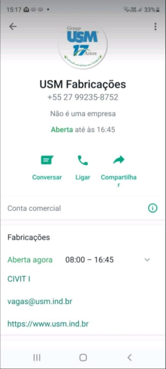 Inscripción: los interesados en las vacantes de empleo anteriores, deben enviar el currículum al WhatsApp del RH de USM a este número: (27) 99235-8752, identificando Nombre y Función, ej.: «fulanodetal-caldeireiro.pdf». Si lo prefiere, el candidato puede enviar el CV a vagas@usm.ind.br, informando en el campo asunto del correo el Nombre y Función.