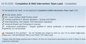 EP2C Energy Anunció Que Está Requiriendo Con Urgencia Profesionales Del Área De Petróleo, Con Conocimiento En Pozos, Para Vacantes En Río De Janeiro