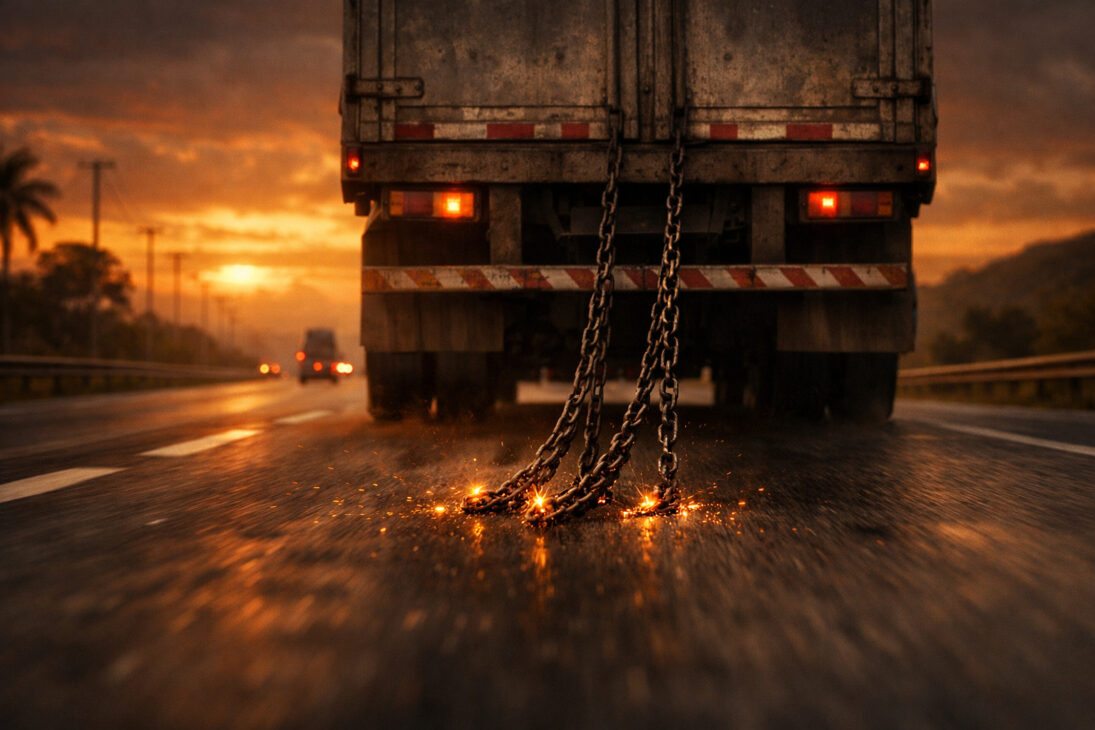 Quien conduce con frecuencia en carreteras ya debe haber notado un detalle curioso en algunos camiones: cadenas metálicas colgando en la parte trasera del vehículo, muchas veces arrastrándose por el asfalto. Para la mayoría de las personas, este elemento parece solo un improviso o un accesorio sin importancia. Sin embargo, está relacionado con un fenómeno físico poco conocido fuera de la ingeniería: la electricidad estática acumulada en vehículos de gran tamaño. En determinadas condiciones, los camiones pueden acumular cargas eléctricas en su estructura metálica. En vehículos que transportan combustibles o productos inflamables, este fenómeno puede representar un riesgo real de chispas. Las cadenas metálicas surgen precisamente como una solución simple para ayudar a disipar esta electricidad.