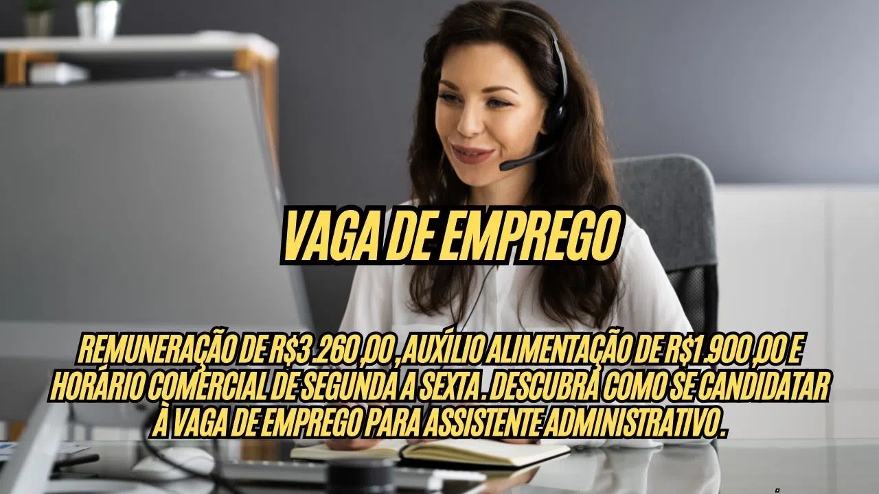 Remuneración de R$3.260,00, auxilio alimentación de R$1.900,00 y horario comercial de lunes a viernes. Descubre cómo postularse a la vacante de empleo para Asistente Administrativo.