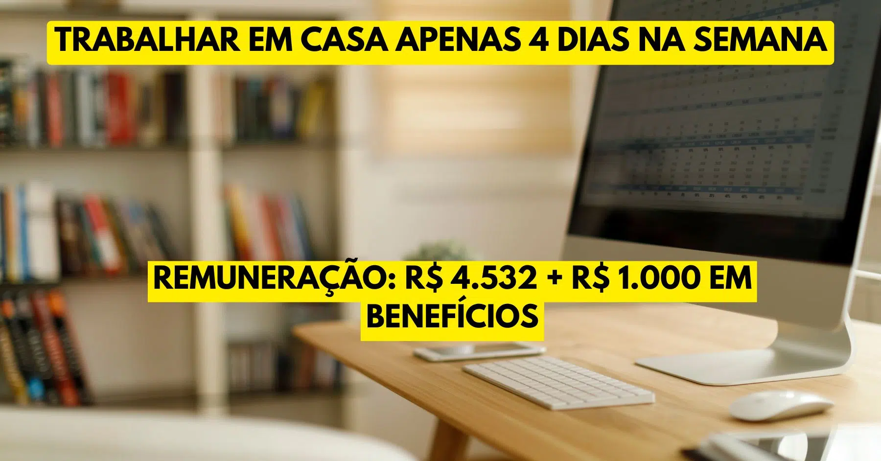 La vacante ofrecida por el Efí Bank es para un cargo efectivo, con modelo de trabajo remoto. Esto significa que el profesional podrá trabajar en casa, con comodidad y toda la flexibilidad que proporciona el home office. Además, la empresa permite trabajar 4 días a la semana, teniendo así una carga horaria de 32 horas semanales, lo cual es un gran diferencial para aquellos que buscan calidad de vida.