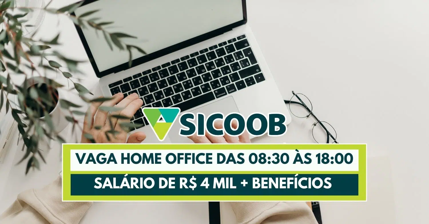 Sicoob abre vaga home office para Analista de Business Junior com salário de R$ 4 mil e benefícios de R$ 2 mil; trabalhe em casa das 08:30 às 18:00 com 1h de almoço.