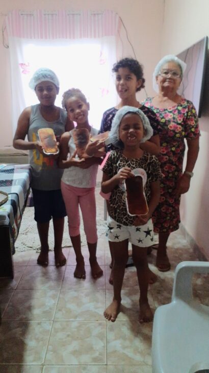 Los niños participan de todo. Recogen PETs, ayudan en la huerta, aprenden a hacer jabón, transforman objetos desechados y descubren posibilidades dentro del propio morro. Josefa prepara todo sin apoyo financiero. Aun así, sigue adelante.