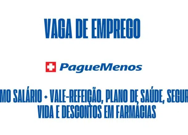 La Red de Farmacias Pague Menos tiene vacantes de empleo abiertas para la función de Atendente de Farmacia en la unidad ubicada en la Rua Safira, Bosque da Saúde, en Cuiabá (MT). La oportunidad es para actuación presencial y efectiva, con salario compatible con el mercado, además de beneficios como vale-alimentación, plan de salud, seguro de vida y descuentos en farmacias.