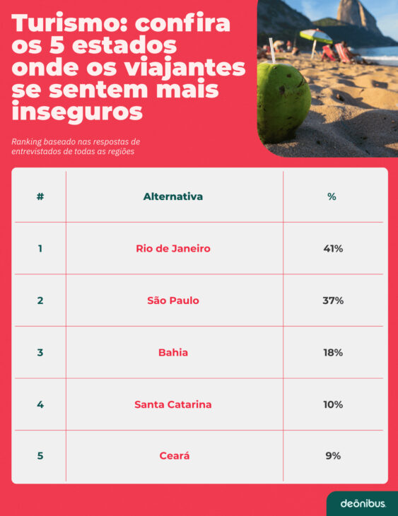 De acuerdo con un estudio realizado en 2025 por DeÔnibus, Río de Janeiro es el estado donde los turistas brasileños se sienten más inseguros durante sus viajes.