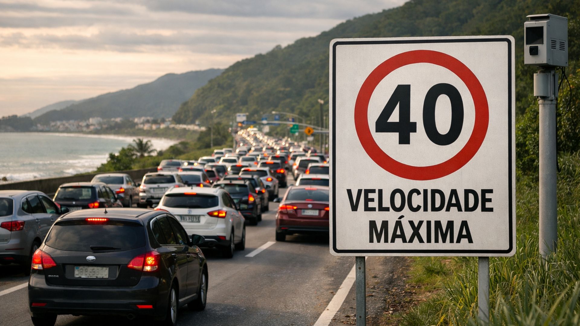 Nuevo radar pasa a fiscalizar tramo de la Rio-Santos en São Sebastião, con límite de 40 km/h, sorprendiendo a conductores y ampliando la presencia de fiscalización electrónica en la región, dentro de un paquete estatal del DER orientado a la reducción de accidentes y exceso de velocidad.