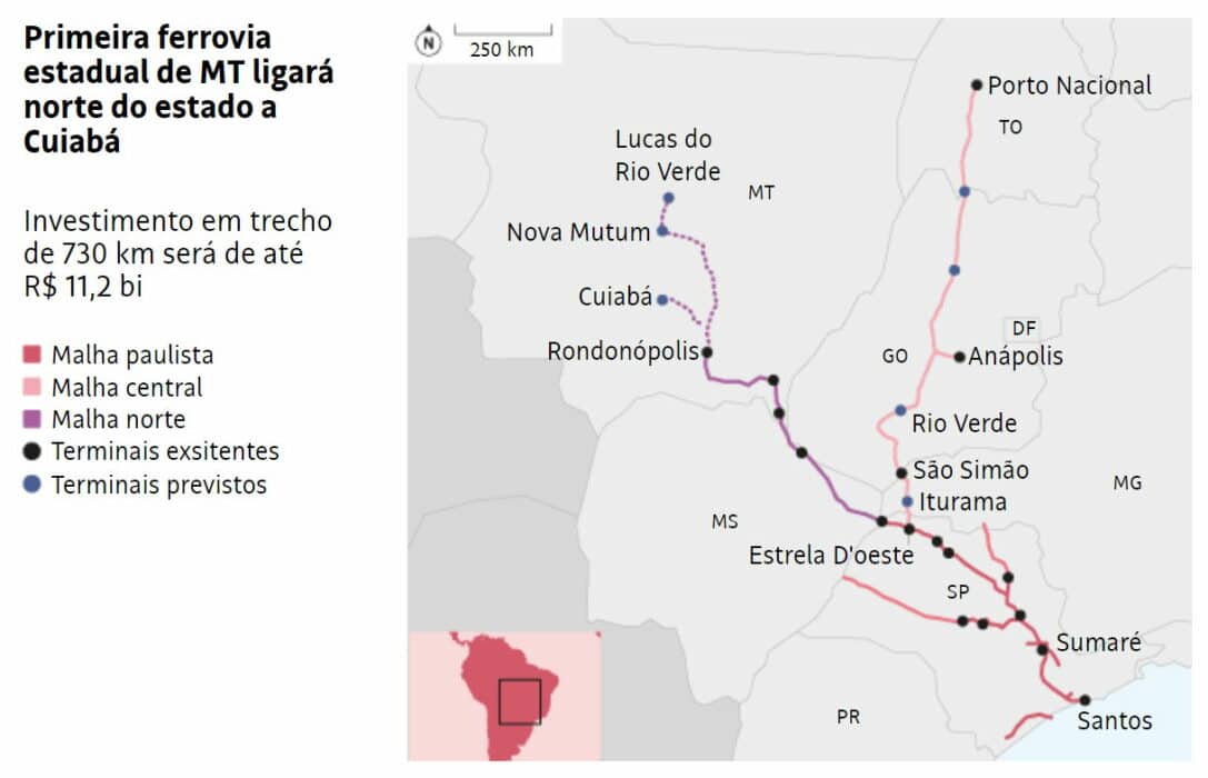 La nueva ferrovia que interconectará Cuiabá con Rondonópolis, así como Rondonópolis con Nova Mutum y Lucas do Rio Verde, además de conectarse con la red ferroviaria nacional, tendrá una inversión de R$ 11,2 mil millones. Según el estado de Mato Grosso, la inversión generará más de 235 mil empleos, además de potencializar la economía.