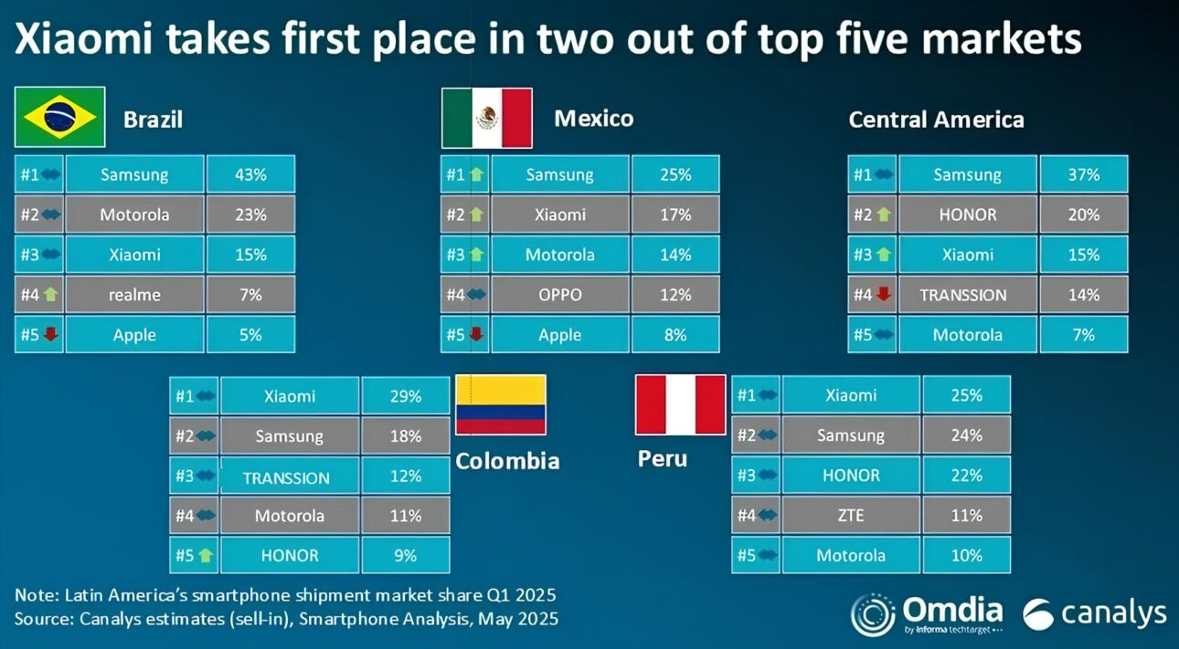 Consulta el ranking de participación en el mercado brasileño de celulares en el 1º trimestre de 2025, según Canalys: