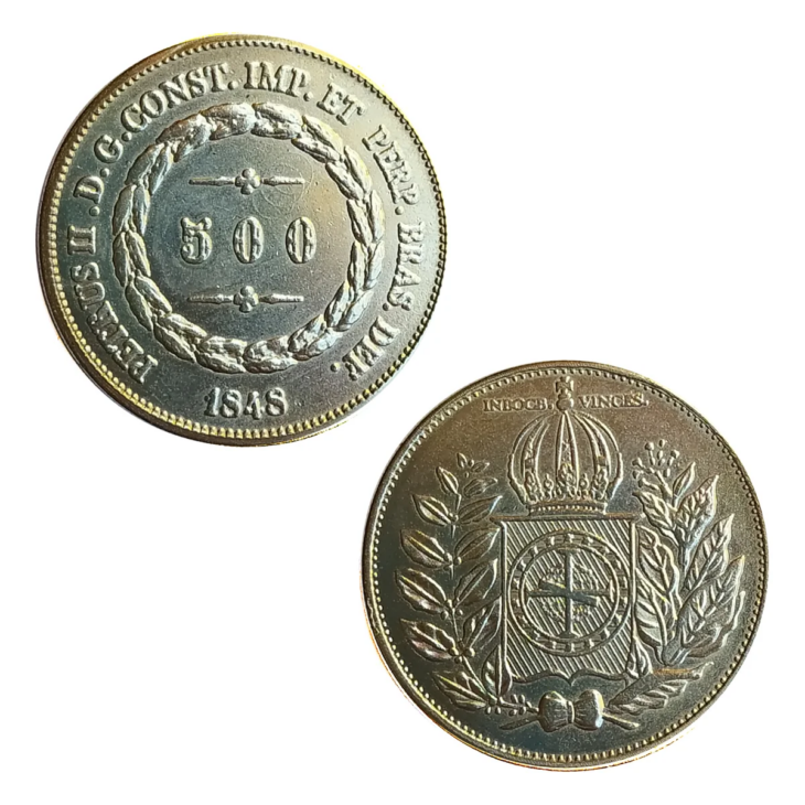 La moneda de 500 réis de 1848 es una de las piezas más buscadas por los coleccionistas brasileños. Esta moneda en particular, producida en pequeña escala, posee un gran valor histórico y es considerada una de las más valiosas de la época del Imperio.