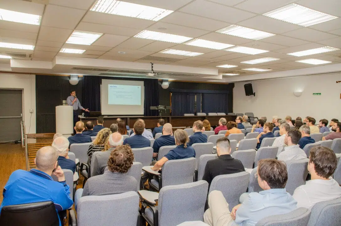 El encuentro contó con conferencias de representantes de CAPES, PSR, TIM Brasil, Holistic AI y Thymos Energía, evidenciando la profunda colaboración entre la academia y la industria. El Prof. Délberis Lima, director del DEE, destacó la trayectoria y el impacto del programa, enfatizando no solo la longevidad, sino también la influencia de los profesores del departamento en la creación y evolución de otros programas en PUC-Rio.