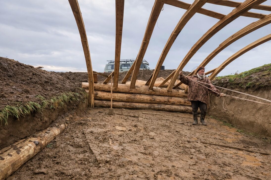 Hombre Cava Un Hueco Para Iniciar La Construcción Y Apuesta Que El Vacío Se Convertirá En La Casa De Sus Sueños, Transformándose En Un Refugio Completo Con Arcos Curvos De Madera, Encastres En El Brazo Y Una Frente De Vidrio Que Llama La Atención De Especialistas.