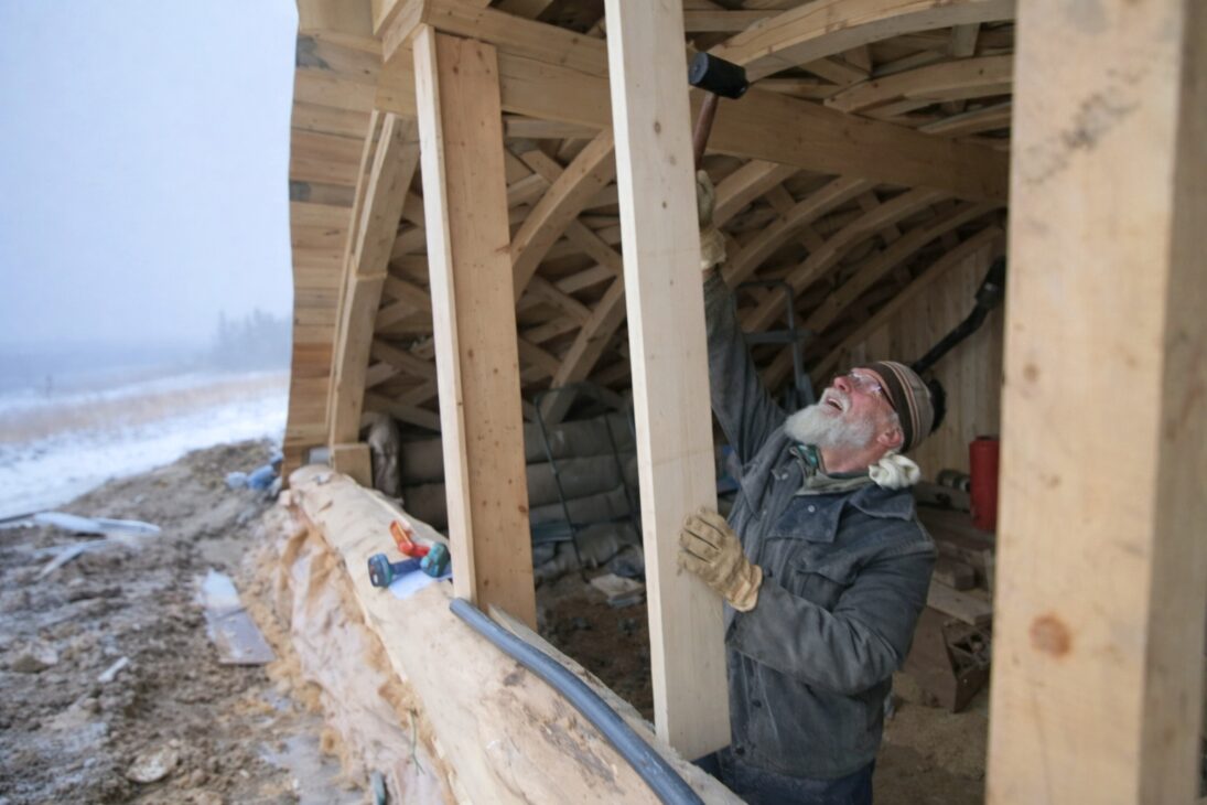 Erigir esto no es tarea solitaria. La pieza grande pide manos sosteniendo, alineamiento fino y soportes temporales. El arco necesita parar en el punto exacto, porque dicta la forma del techo y también el espacio interno.