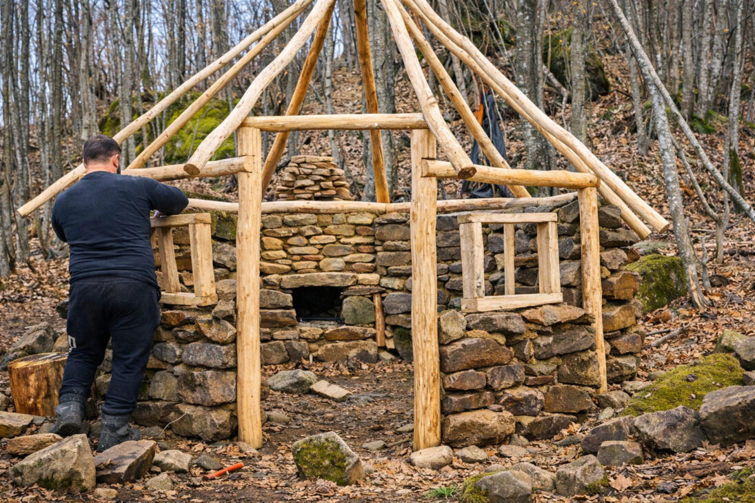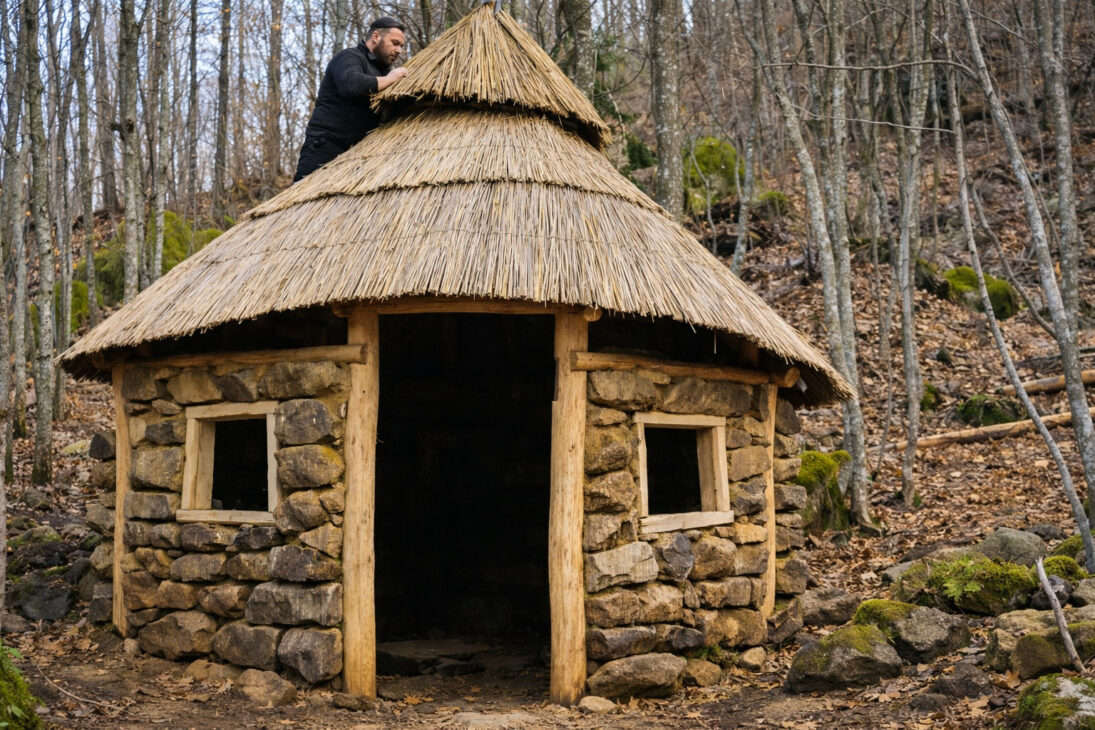 El resultado llama la atención porque muestra una solución constructiva simple y eficiente. Piedra, madera y paja forman un refugio completo, montado solo con herramientas básicas y un método que prioriza uso directo de los recursos naturales disponibles en el lugar.