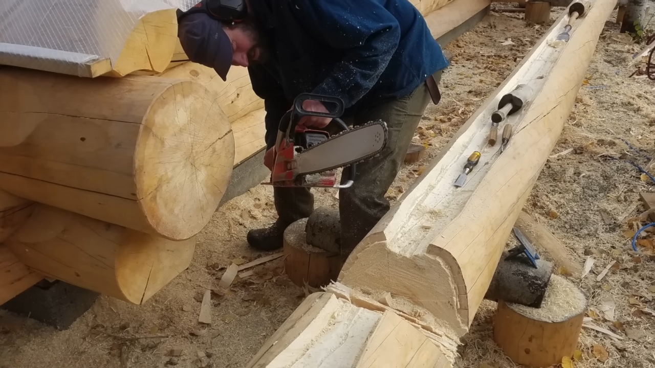 La forma cuadrada permitió usar troncos del mismo tamaño, facilitando la planificación y reduciendo el desperdicio. Cada tronco requirió varias horas de trabajo, desde el encastre hasta el aislamiento.