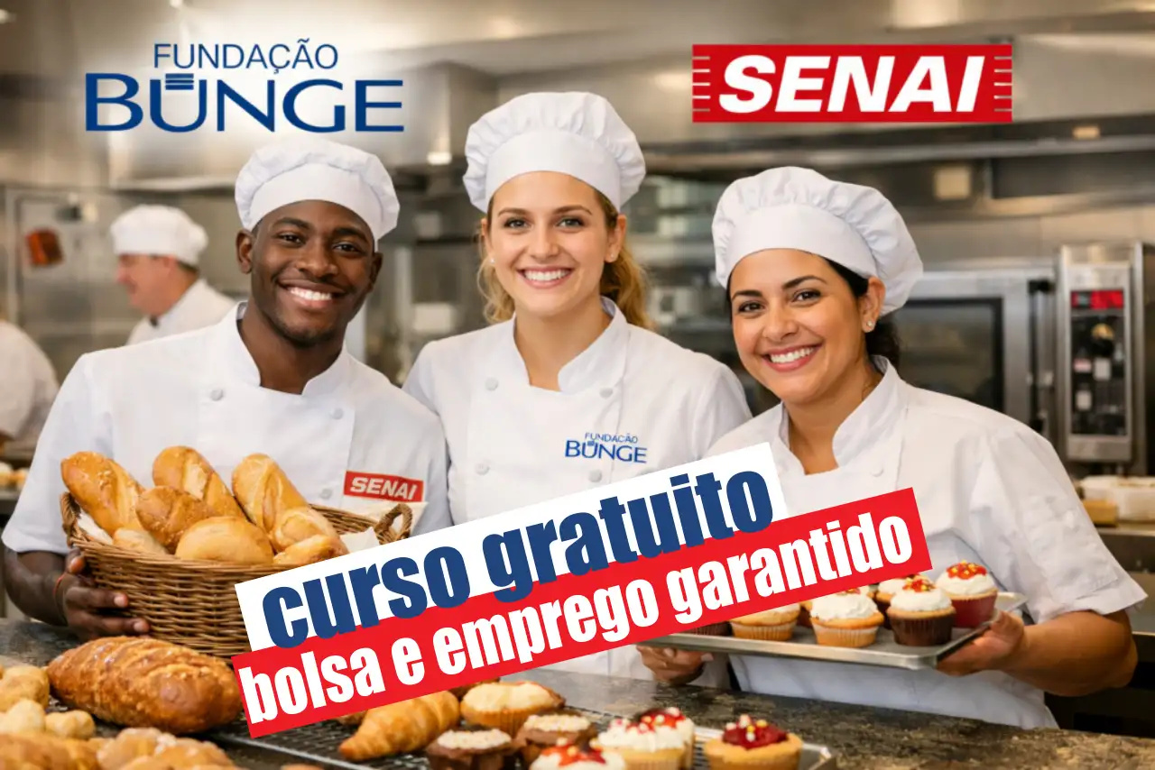 Fundación Bunge y Senai ofrecen curso gratuito de panificación y confitería con 140 vacantes en São Paulo, Río de Janeiro, Recife, Brasília y Belo Horizonte. Formación con bolsa de ayuda y conexión con empleo formal. Inscripciones hasta el 23 de febrero.