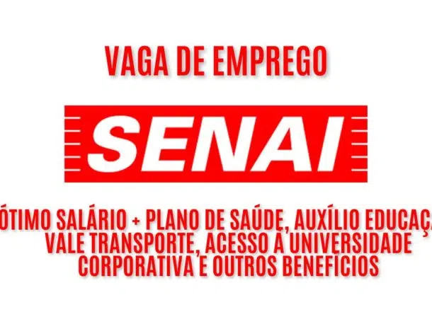 Las inscripciones están abiertas hasta el día 17 de febrero de 2025 para esta vacante efectiva presencial en el SENAI. El salario es competitivo y hay diversos beneficios, incluyendo plan de salud, auxilio educación y vale transporte.