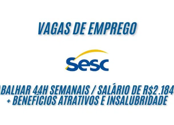 Sesc busca interessados em trabalhar 44h semanais e oferece salário de R$2.184,00 + benefícios atrativos e insalubridade; Veja como você pode garantir sua vaga