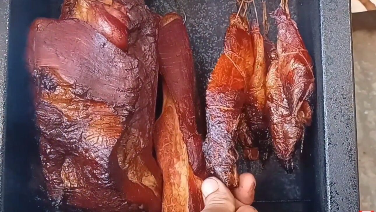 El pescador aún hace una observación práctica: al comprar panceta para tocino, prefiere piezas más delgadas, ya que se defuman más rápido y de manera más uniforme. Por otro lado, piezas más gruesas requieren más tiempo de humo para alcanzar el punto ideal.