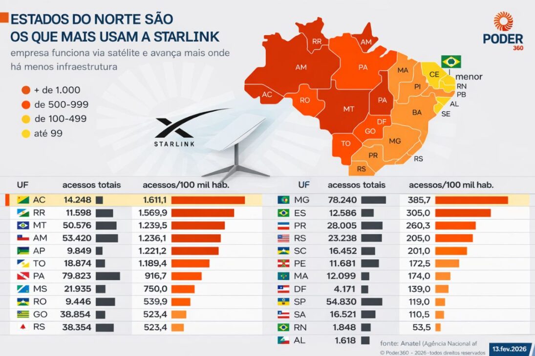 Con Crecimiento Del 85% En 2025, Starlink Alcanza 606 Mil Accesos Activos, Se Convierte En La 13ª Mayor Operadora Del País Y Amplía Presencia En Áreas Remotas, A Pesares De Una Mensualidad De R$ 235 Y Kit Inicial De R$ 999, Superando Con Creces El Avance Promedio Del Mercado Brasileño De Banda Ancha.