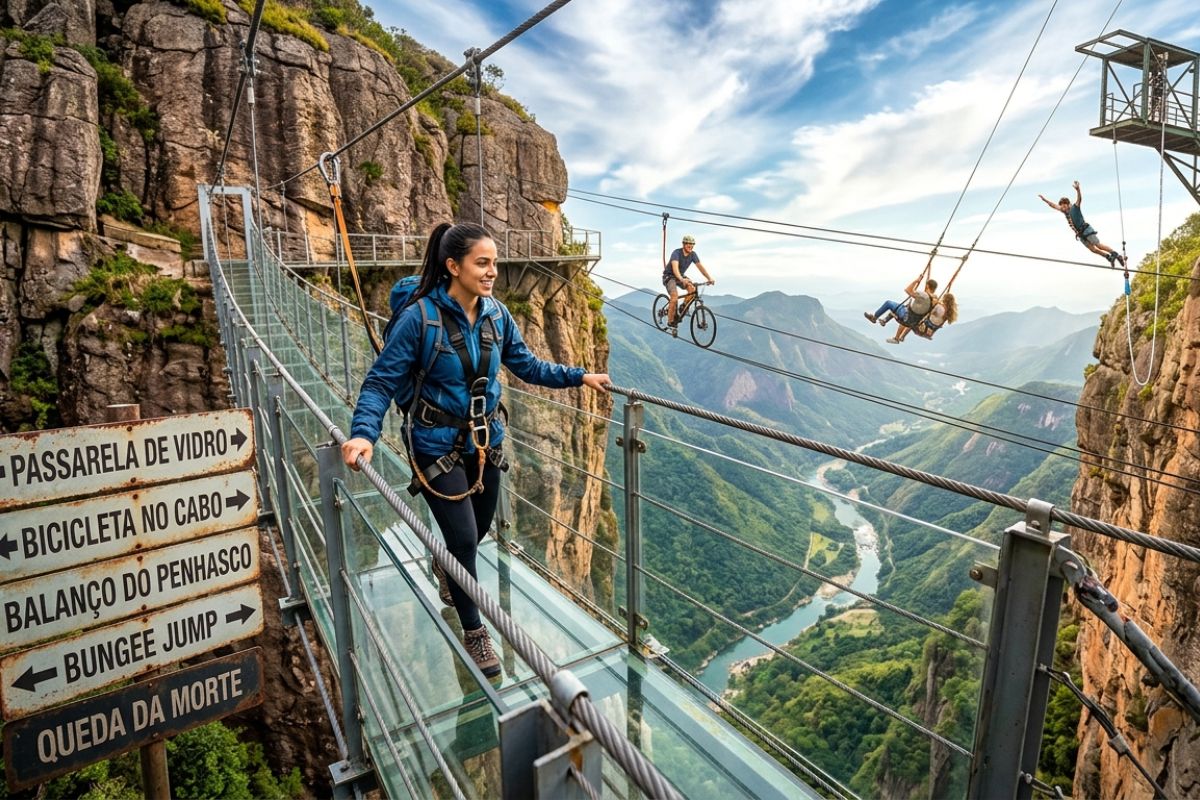 Entré en el parque de diversiones más peligroso del mundo para curar el miedo a las alturas: pasarela de vidrio, bicicleta en cable, columpio en el acantilado, bungee jump y la temida Caída de la Muerte.