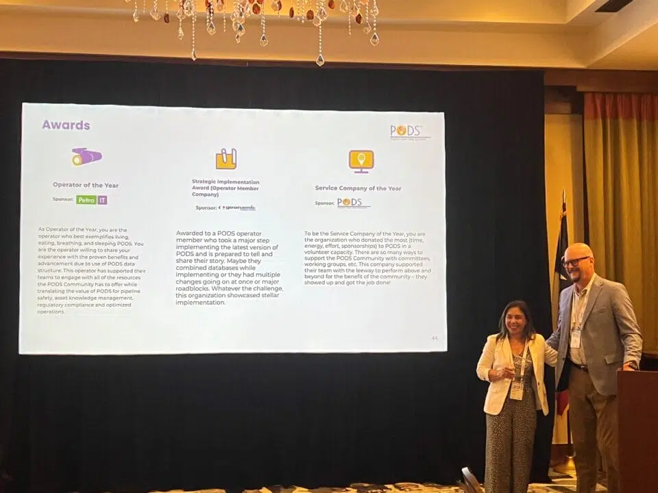 La PODS Association es una organización sin fines de lucro, líder de la comunidad global en estándares y mejores prácticas de datos de ductos, que promueve el PODS Strategic Implementation Award. En esta edición, además de TAG que presentó un arduo trabajo en el proyecto del nuevo PODS 7, modelo lanzado recientemente y que ofrece soporte a bases de datos relacionadas, incluyendo soporte para tipos de datos de geometría espacial nativos, la entidad también entrega premios a “Voluntario del Año”, “Innovación”, “Migración PODS”, “Empresa de Servicios del Año” y “Operador del Año”.