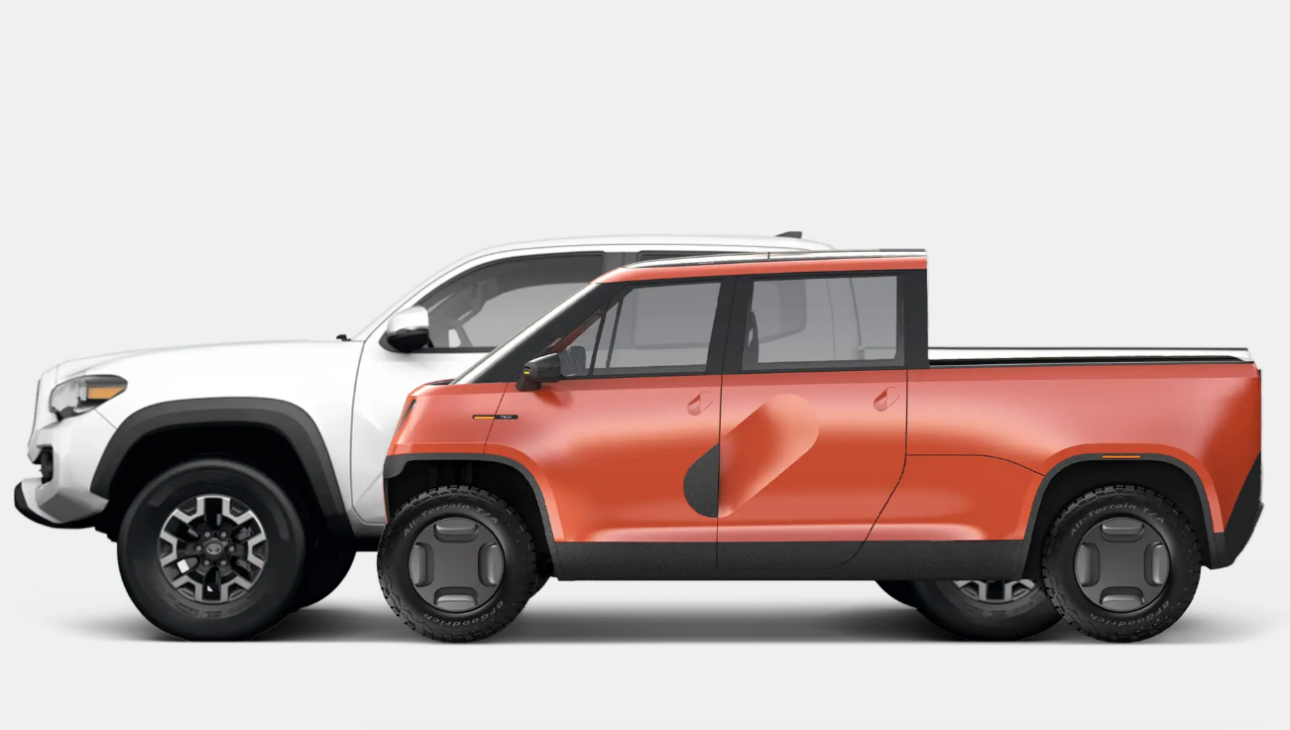 Compacto, el vehículo mide solo 3,86 mm de longitud, pero su caja se extiende por 1,52 metros. A modo de comparación, un Renault Kwid mide 3.73 mm. La empresa completó en su sitio web: «Capacidad de Toyota Tacoma y alcance y eficiencia similares a los de Tesla», afirma la empresa.
