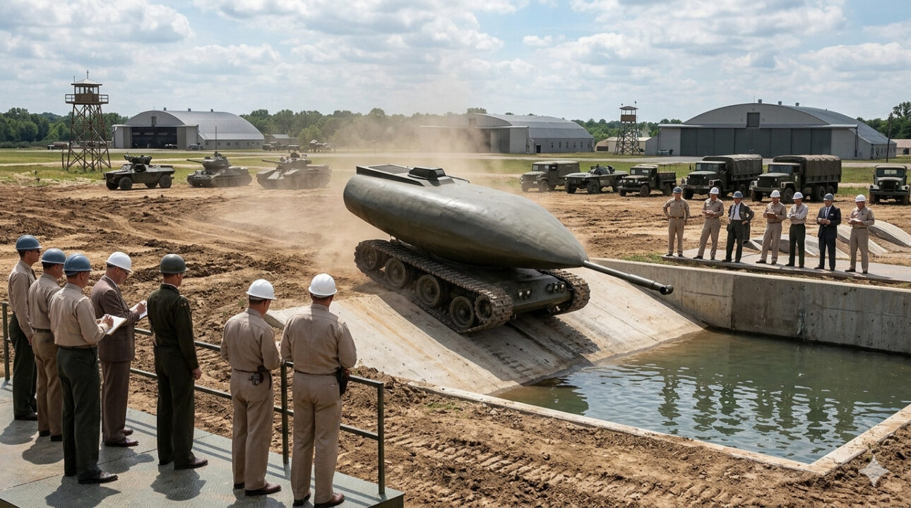 Otro aspecto curioso del proyecto era la capacidad anfibia. La torre cápsula estaba totalmente sellada y funcionaría como un casco flotante. Esto permitiría que el tanque atravesara ríos y áreas inundadas sin necesidad de puentes o vehículos de ingeniería.