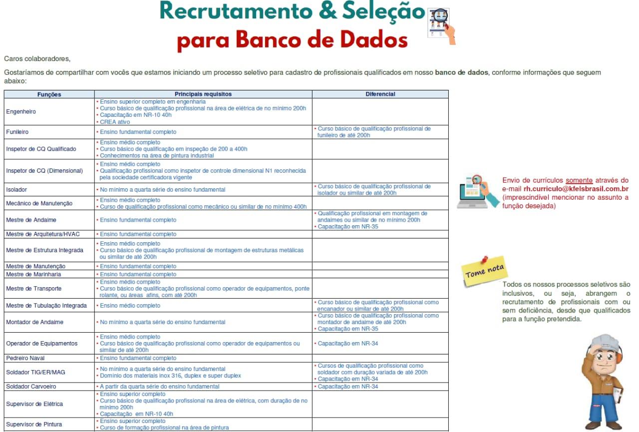 Más vacantes offshore y onshore actualizadas divulgadas por Techocean hace poco más de 3 días, los cargos son para áreas específicas, pero accesibles para los estándares del área de petróleo y gas. Las contrataciones se realizarán por el polo operacional de la empresa con sede en Macaé, así como el último proceso de selección que promovió en noviembre de 2018 (Consulte aquí los cargos de esa época). Para hoy, siguen los requisitos y detalles adicionales:
