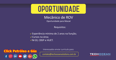¿Están interesados en estas vacantes offshore y onshore en Techocean y cumplen con los requisitos solicitados? Entonces pueden enviar sus currículos tranquilamente a la dirección de correo contacto@techoceansolutions.com.br, consulten el llamado del RH justo abajo para desahogo de conciencia.