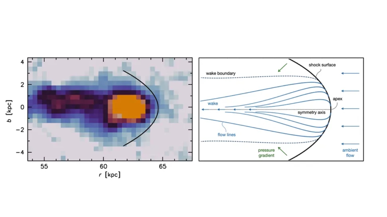 Además Del Choque, El Objeto Parece Haber Dejado Una Trilha De Formación Estelar Con 200,000 Años Luz De Extensión. Esta Estructura Ayuda A Reconstruir El Trayecto Y Da Escala Al Evento, Ya Que La Trilha Se Extiende Por Una Distancia Descrita Como El Doble Del Diámetro De Toda La Vía Láctea.