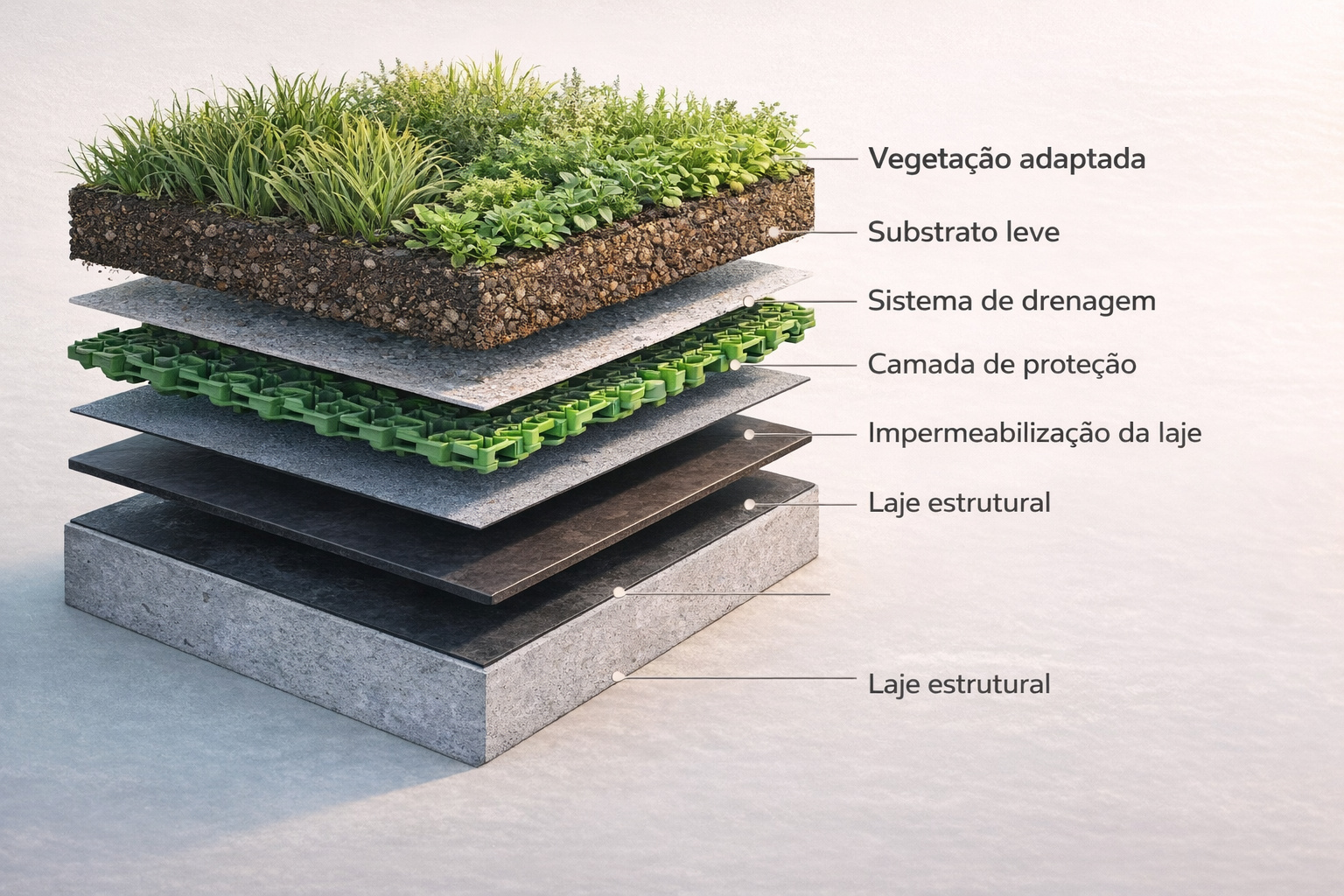 Un techo verde no es simplemente poner tierra y plantas sobre una losa. De hecho, se trata de un sistema técnico compuesto por varias capas estructurales. Entre los principales componentes están: