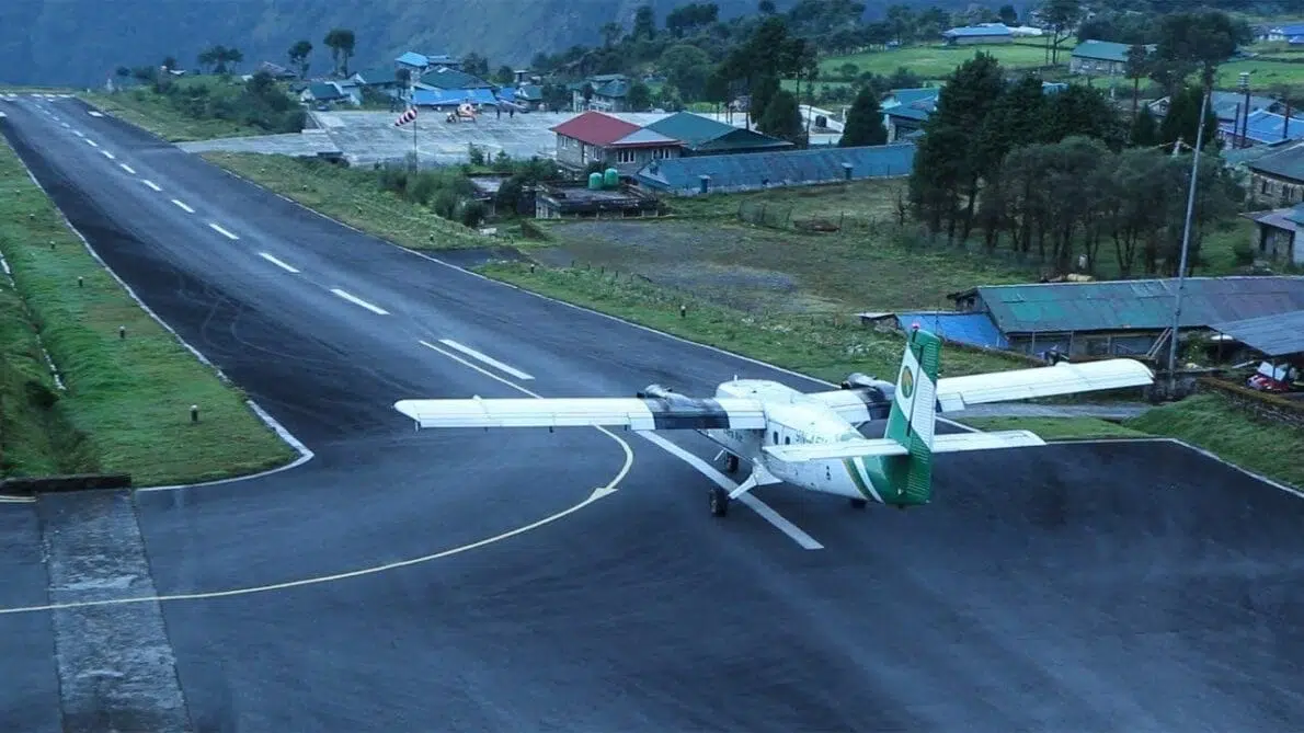 El Aeropuerto de Lukla, oficialmente conocido como Aeropuerto Tenzing-Hillary, es uno de los más extremos y peligrosos del mundo, situado en Nepal. Localizado a una altitud de 2.845 metros, es el punto de partida para muchos de los que pretenden escalar el Monte Everest. La pista tiene solo 527 metros de longitud y termina abruptamente en un precipicio, mientras que el otro extremo está cerrado por una montaña, creando una de las aproximaciones de aterrizaje más desafiadoras del mundo.