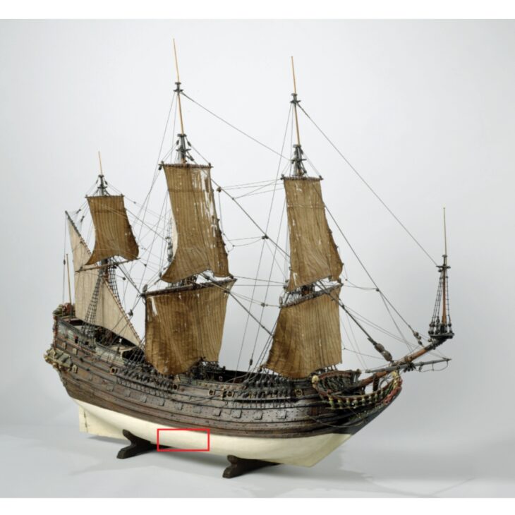 La sección revelada por la Tempestad Chandra impresiona por su estado de conservación. Compuesta por al menos 15 cuartos (las “costillas” del barco) conectadas por clavos de madera a cinco tablas del casco exterior, la pieza demuestra la robusta ingeniería naval de la época.