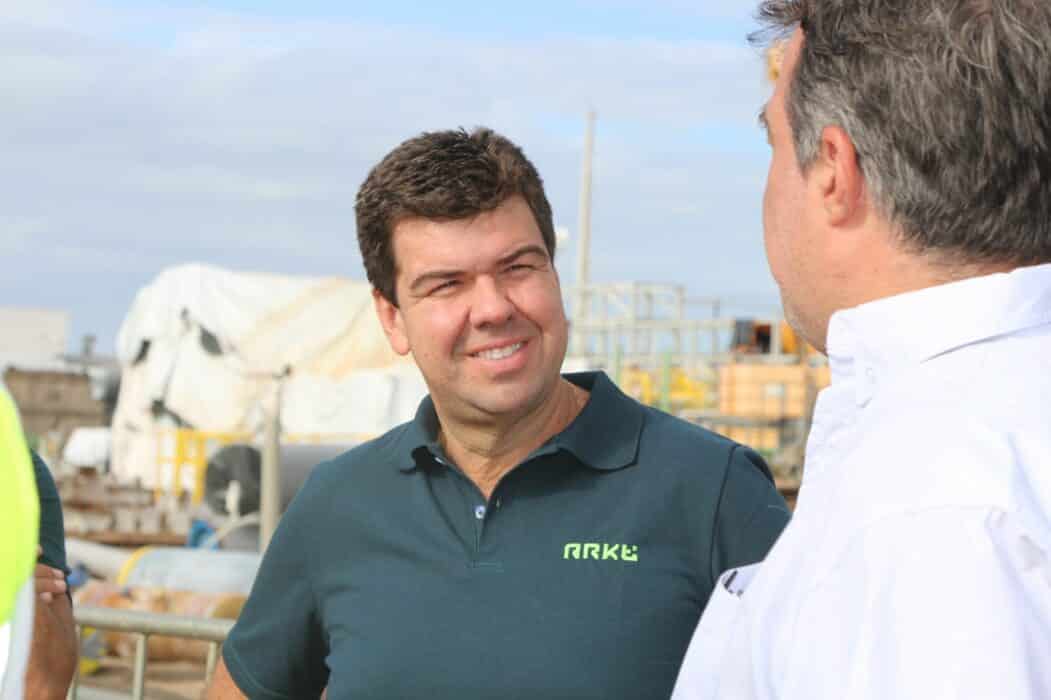 El alcalde de Macaé, Welberth Rezende, estuvo reunido en el sitio de obras de la termelétrica Marlin Azul junto con el CEO del grupo ARKE, propietario de la UTE Marlin Azul, Bruno Chevalier; con el Director de Operaciones, João Lucas Ribeiro, y el gerente del proyecto Rogério de Souza, esta semana, y presentó el cronograma de obras de la usina termoeléctrica (UTE), las posibilidades de nuevos negocios del grupo empresarial para Macaé y región. La expectativa ahora es que el emprendimiento, que usará gas del pre-sal, genere al menos mil empleos directos.