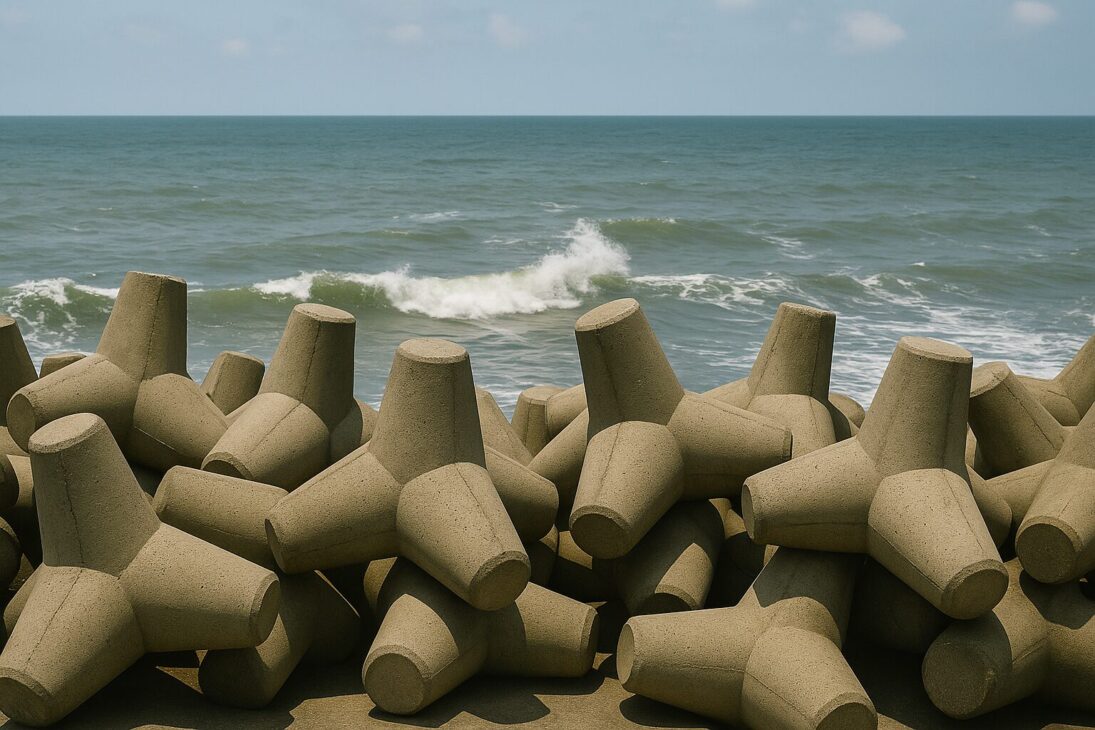 Aunque parezcan solo bloques apilados en la playa, los tetrapodos son el resultado de una ingeniería cuidadosa. Protegen vidas, bienes y ambientes.