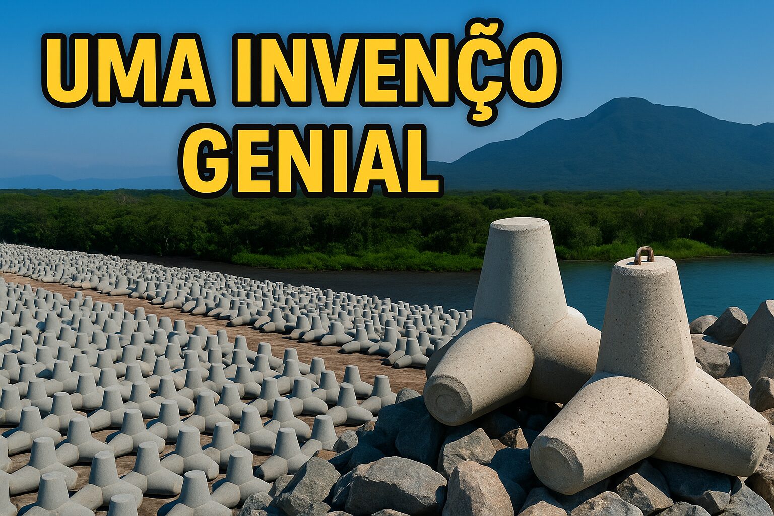 Tetrapodos de concreto forman barreras contra olas fuertes y ayudan a proteger playas, puertos y ríos de la erosión y de los impactos del mar.