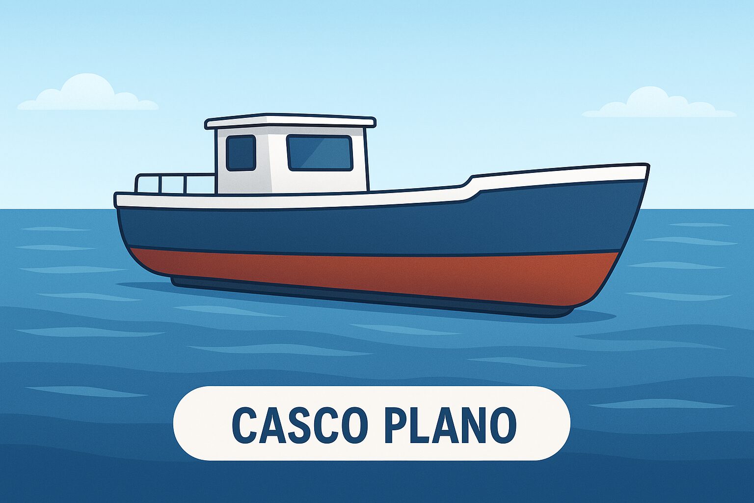 Este tipo de casco está indicado para navegación a baja velocidad y en aguas tranquilas. Proporciona fácil desplazamiento en áreas poco profundas, pero puede generar incomodidad en mares con olas grandes, debido a la tendencia de golpear el agua con más fuerza.