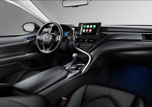 El Camry también cuenta con un panel central con acabado en soft touch y detalles en madera en el patrón black engineered wood, además de adornos cromados. Y, para ofrecer un toque de distinción, exclusividad y personalidad, viene con techo solar panorámico con apertura eléctrica y sistema de iluminación ambiental con LEDs, que, además de proporcionar un ambiente agradable, realzan los detalles y los materiales interiores.