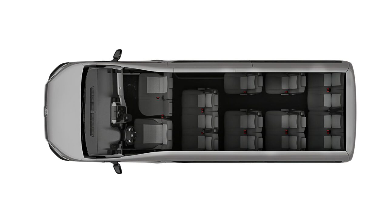 La Hiace busca dialogar con todos estos públicos al combinar capacidad para 15 ocupantes más el conductor con una cabina enfocada en el confort en períodos prolongados de uso.