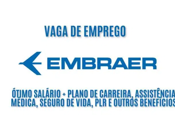 La vacante exige disponibilidad para trabajo presencial en São José dos Campos (SP), donde se encuentra ubicada la principal unidad de fabricación de Embraer.