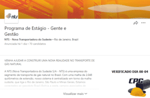 La NTS (Nueva Transportadora del Sudeste S/A – NTS) es una empresa del segmento de transporte de gas natural en Brasil y tiene su programa de pasantías abierto para Río de Janeiro. Con una red de 2.048 kilómetros de extensión, su sistema está centralizado en torno a la red sudeste, que conecta Río de Janeiro, São Paulo y Minas Gerais.