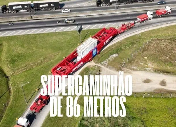 Un convoy logístico de proporciones raras debe llamar la atención este domingo (23), en las carreteras BR-470 y BR-101, en Santa Catarina. El transporte de carga gigante en las BRs 470 y 101 será realizado por un supercamión de 86 metros de longitud, que llevará un transformador de energía fabricado por WEG. La operación exigirá bloqueos temporales y escolta de la PRF a lo largo de la trayectoria entre Blumenau e Itajaí.