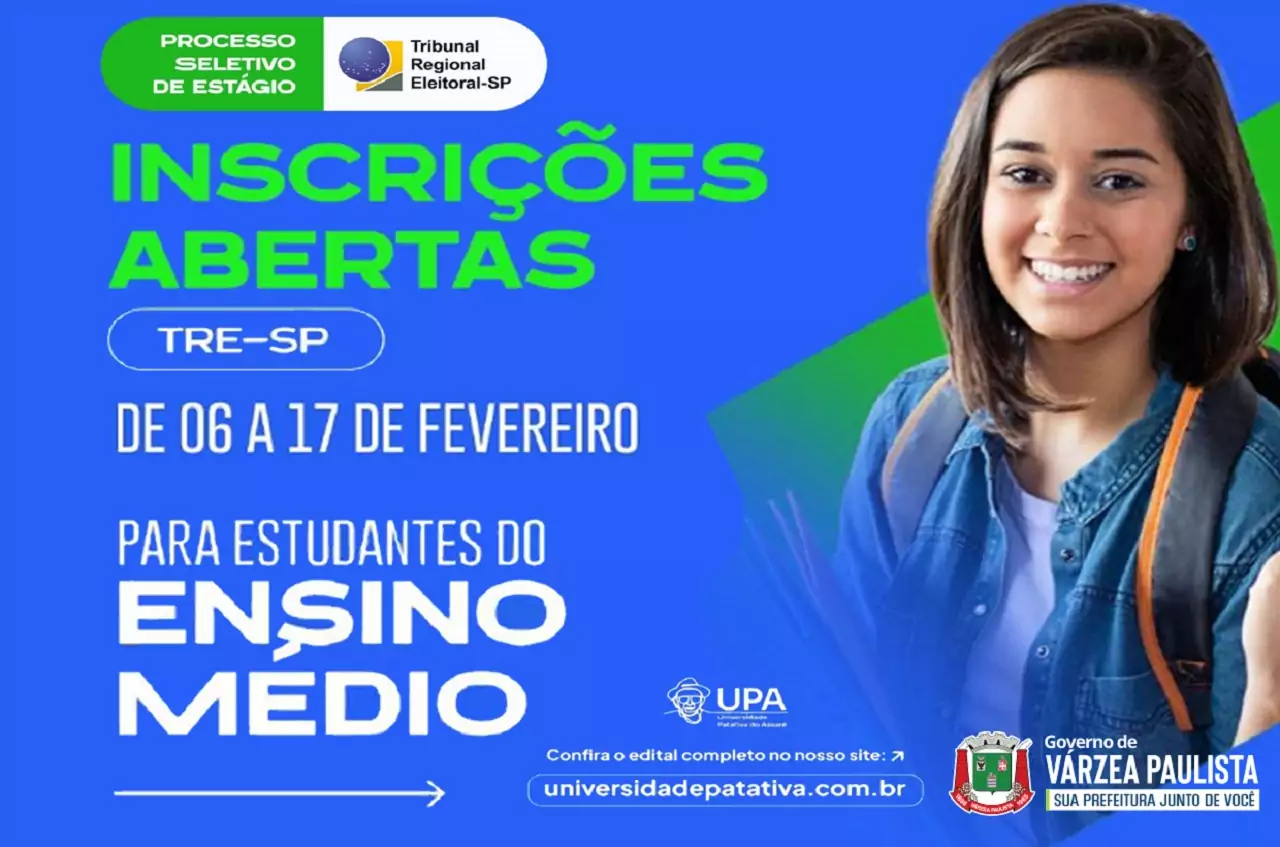 Los interesados en competir por una de las vacantes de prácticas de nivel medio del TRE-SP deben realizar su inscripción a través de la página de la Universidade Patativa do Assaré (UPA), institución responsable de gestionar el programa. El plazo va del 6 al 17 de febrero.