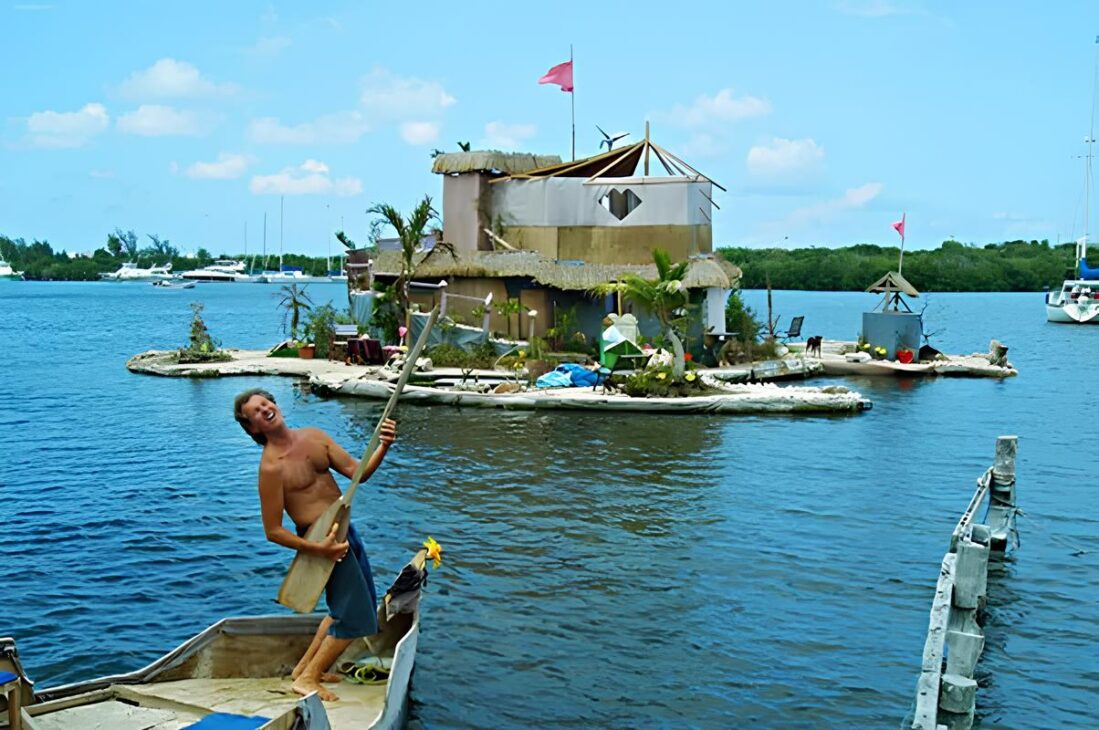 Su primer intento, llamado Spiral Island, fue construido en 1998, pero destruido por un huracán en 2005. Sin rendirse, inició el proyecto de una segunda versión, aún más grande y resistente: la Spiral Island II, anclada cerca de Isla Mujeres, en México.