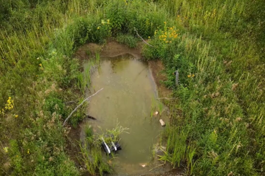 En otoño, después de un período fuera, se notó que algo había causado estragos en el lago: la estructura flotante estaba volteada, juncos fueron pisoteados y sapos y ranas parecían más ariscos, sugiriendo presión de depredadores como mapaches.