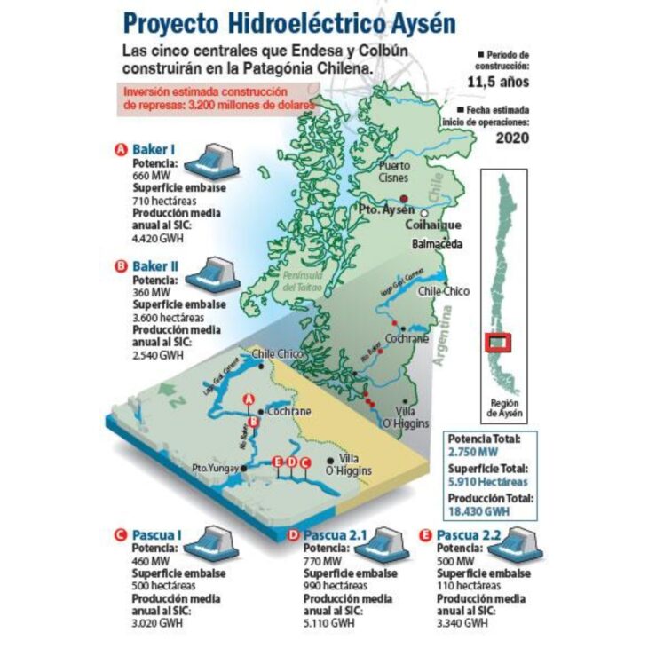 HidroAysén preveía 5 represas y potencia de 2.750 MW en los ríos Baker y Pascua