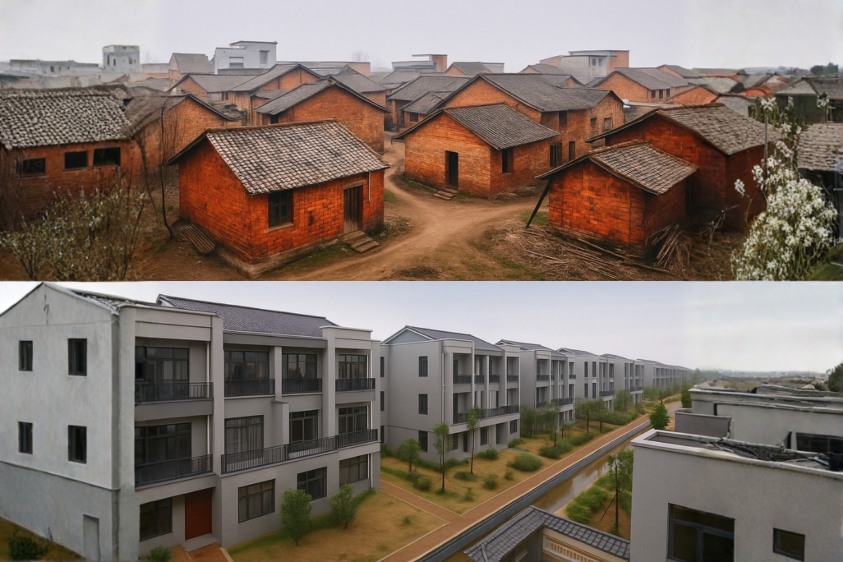 El plan incluía un modelo mixto: familias de bajos ingresos, especialmente las atendidas por el sistema de “cinco garantías” del gobierno chino, recibieron las casas de forma totalmente gratuita, mientras que otras familias contribuyeron con 30 mil yuanes (alrededor de R$ 22 mil en la cotización actual).