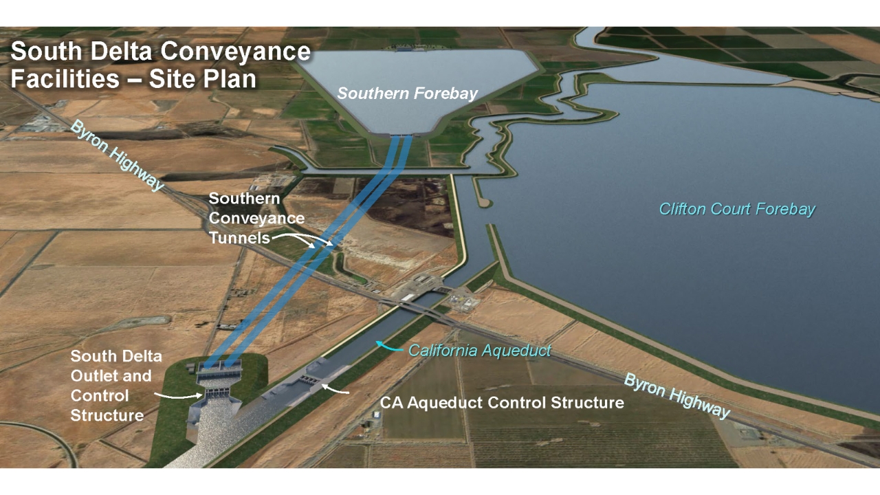 El Delta Conveyance Project consiste en la construcción de un túnel de gran diámetro para captar agua del río Sacramento, al norte del delta, y transportarla por vía subterránea hasta el sistema de acueductos del State Water Project. Esta red abastece a cerca de 27 millones de personas y aproximadamente 750.000 acres de áreas agrícolas en el centro y el sur de California.