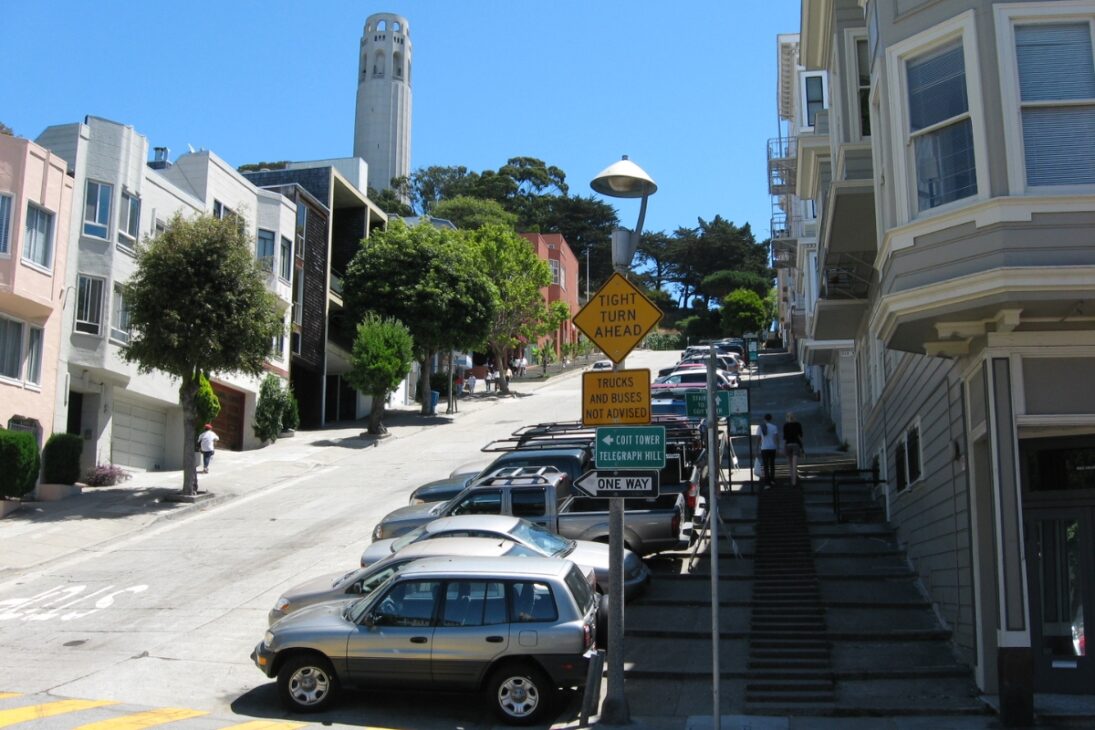 San Francisco llama la atención por tener calles con inclinaciones extremas, capaces de llegar a 17,5 grados en tramos específicos.