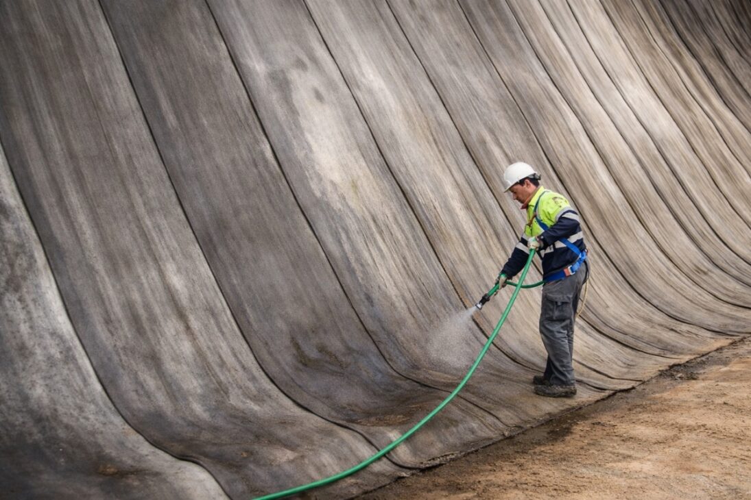 Después De Desenrollar Y Ajustar El Posicionamiento, El Equipo Hidrata El Tejido De Concreto Con Agua, Por Pulverización, Manguera O Inmersión, Dependiendo De La Aplicación.